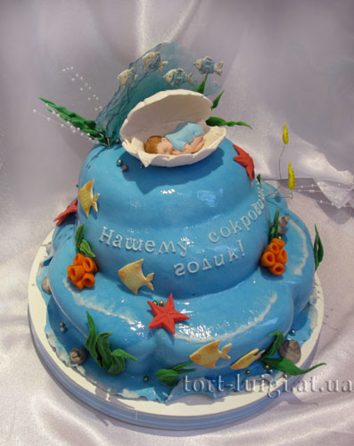 Торт морской с ракушкой и малышом